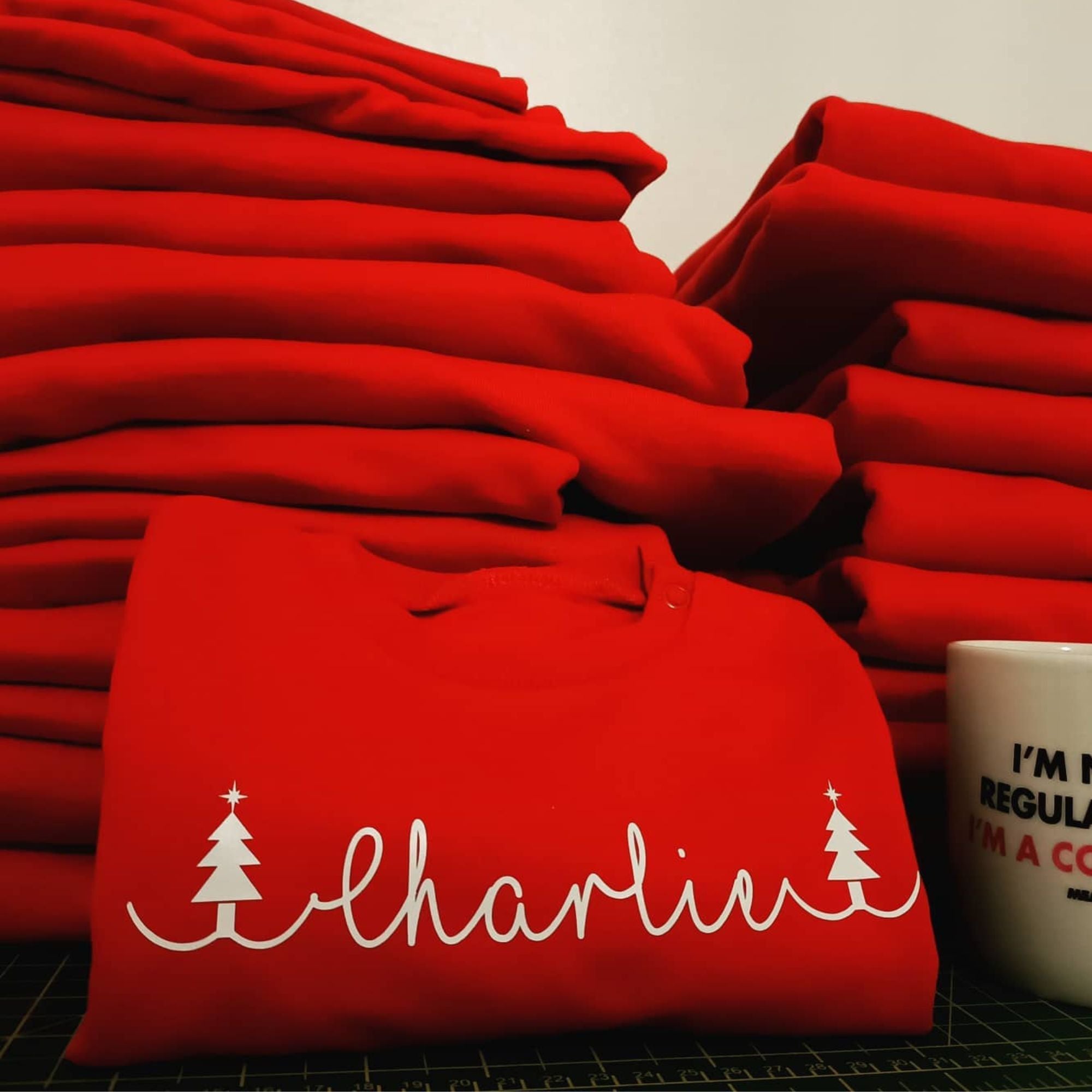 You can purchase your Xmas sweatshirt with either vinyl or embroidered personalisation.