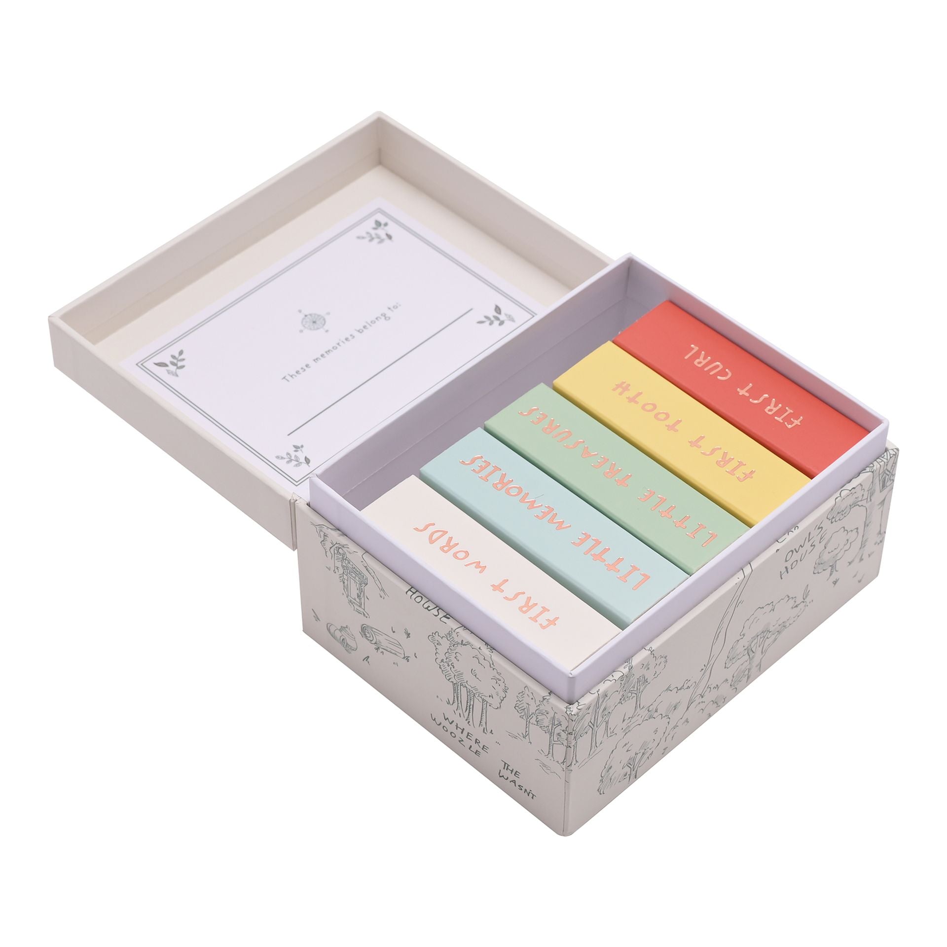 This beautiful and charming Winnie the Pooh keepsake box is the perfect little box to store your special baby memories. Featuring a cute Winnie the Pooh design on the front and inside you will find 5 matchboxes in which you can keep your little ones first memories such as, First Words, Little Memories, Little Treasures, First Tooth and First Curl. Each coloured box features gold coloured text down the side of the box. This is a lovely special keepsake box for any baby nursery.