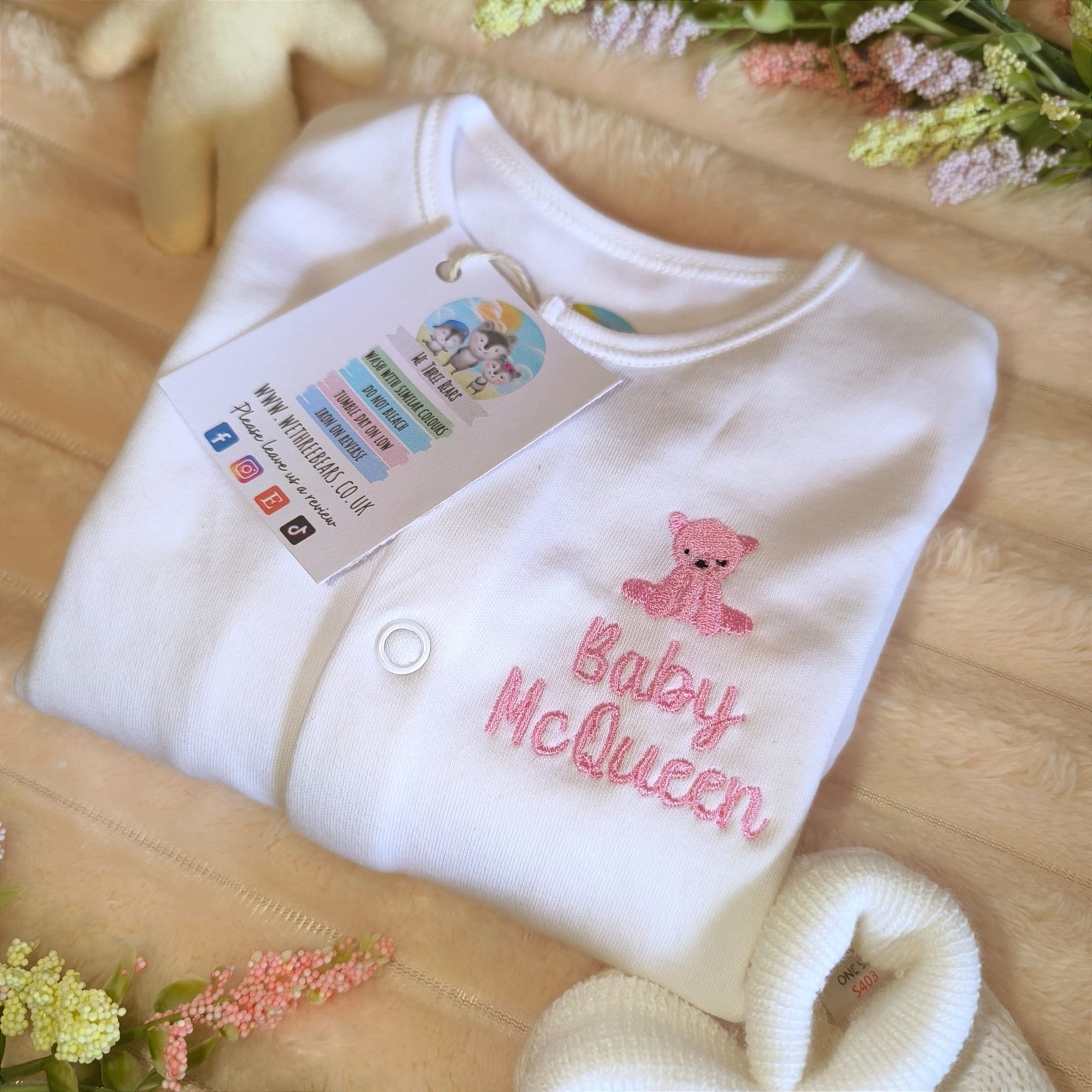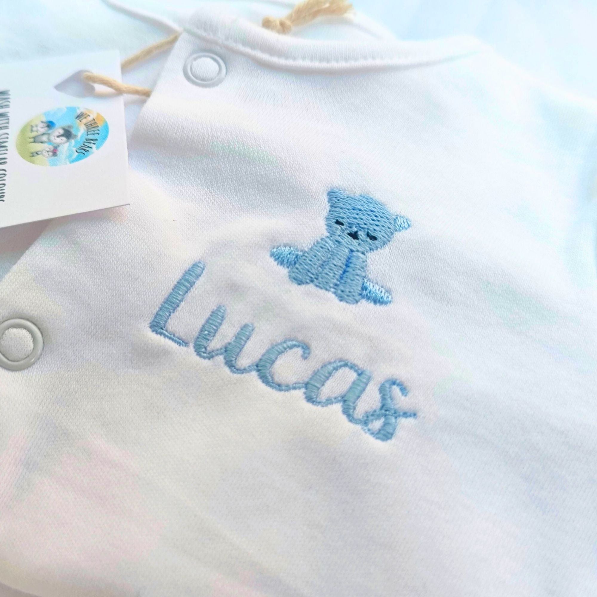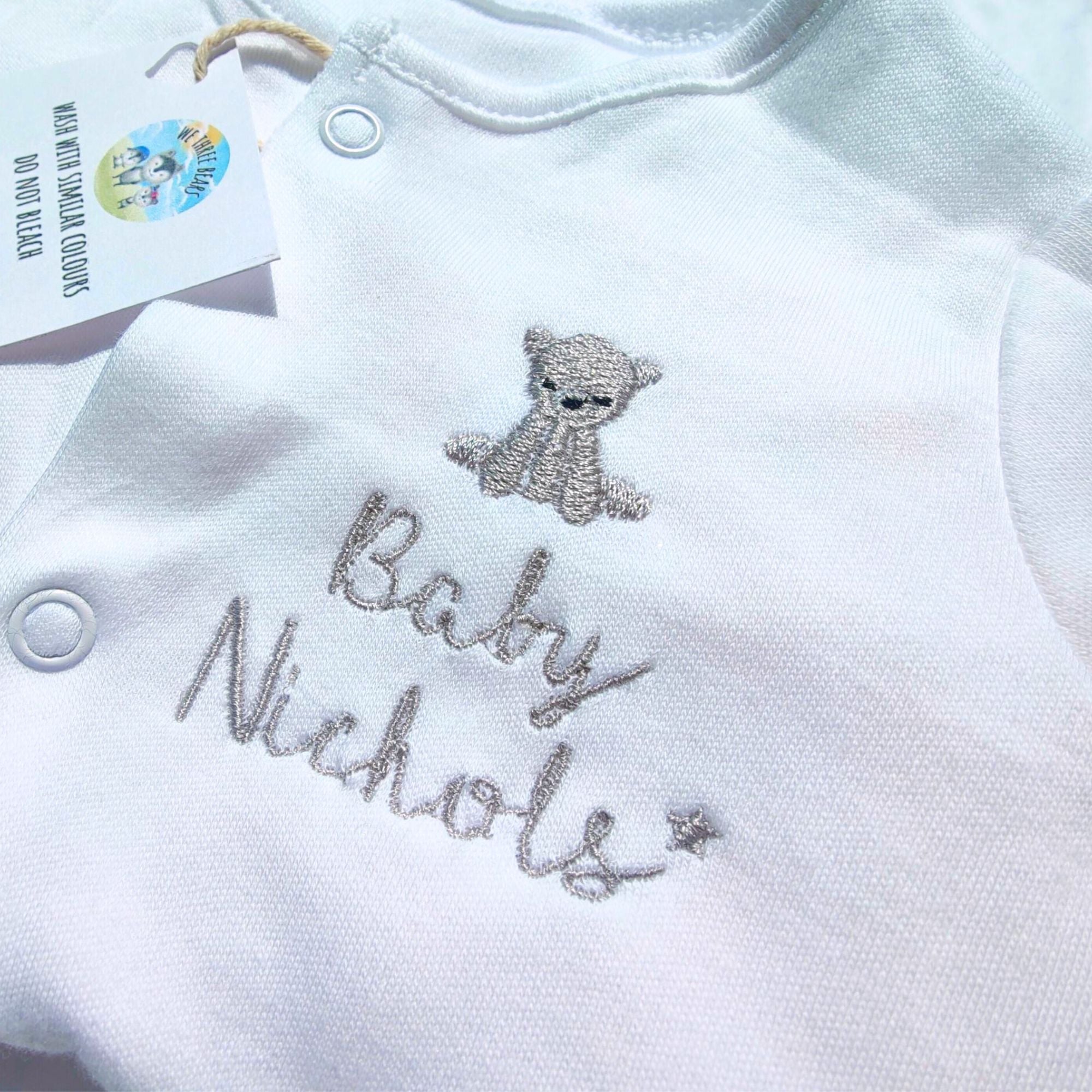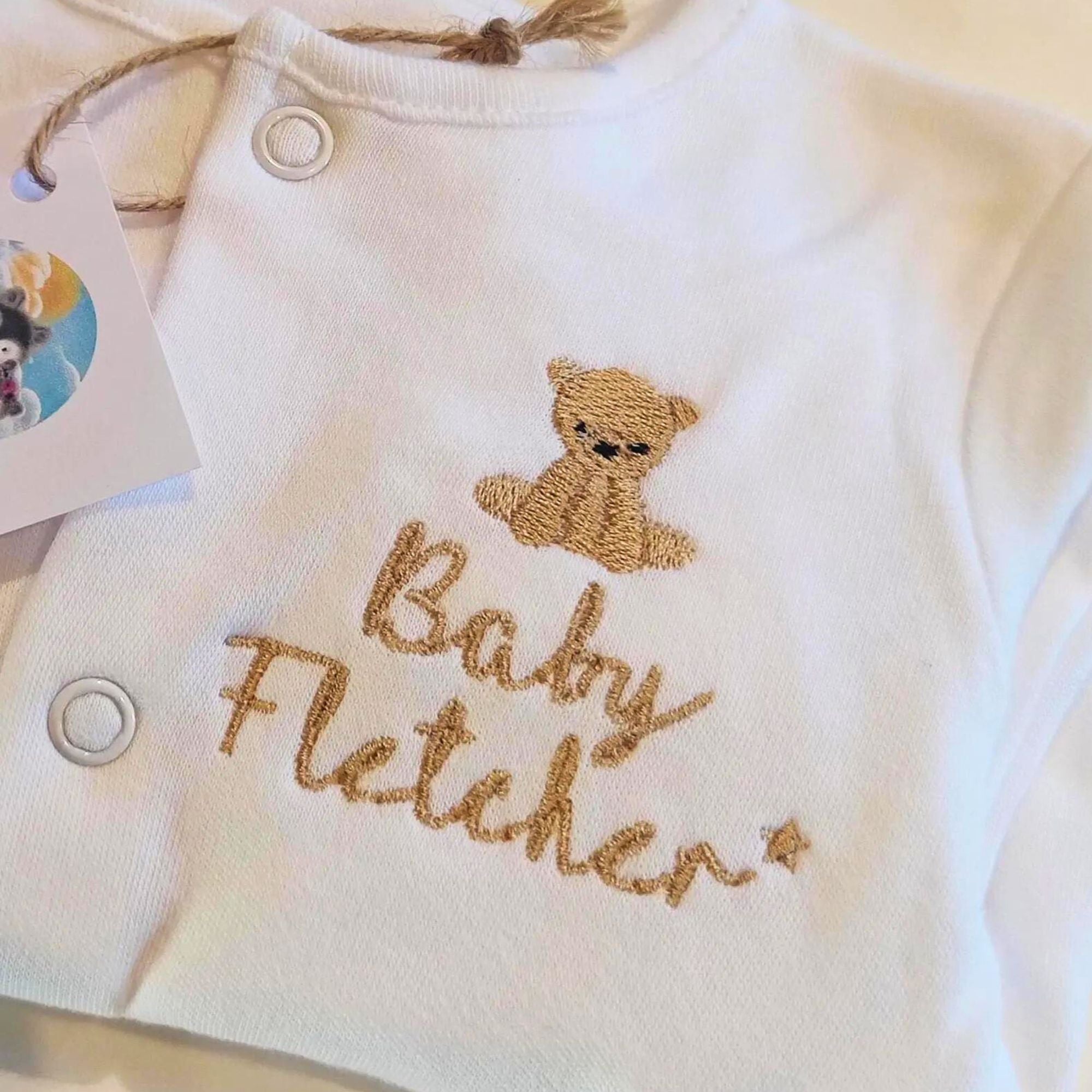 Your personalised sleepsuit features a beautifully embroidered bear design that adds a playful touch to your new baby's wardrobe. Our baby bear design is just adorable,  exactly what we think on our new little bear cubs.