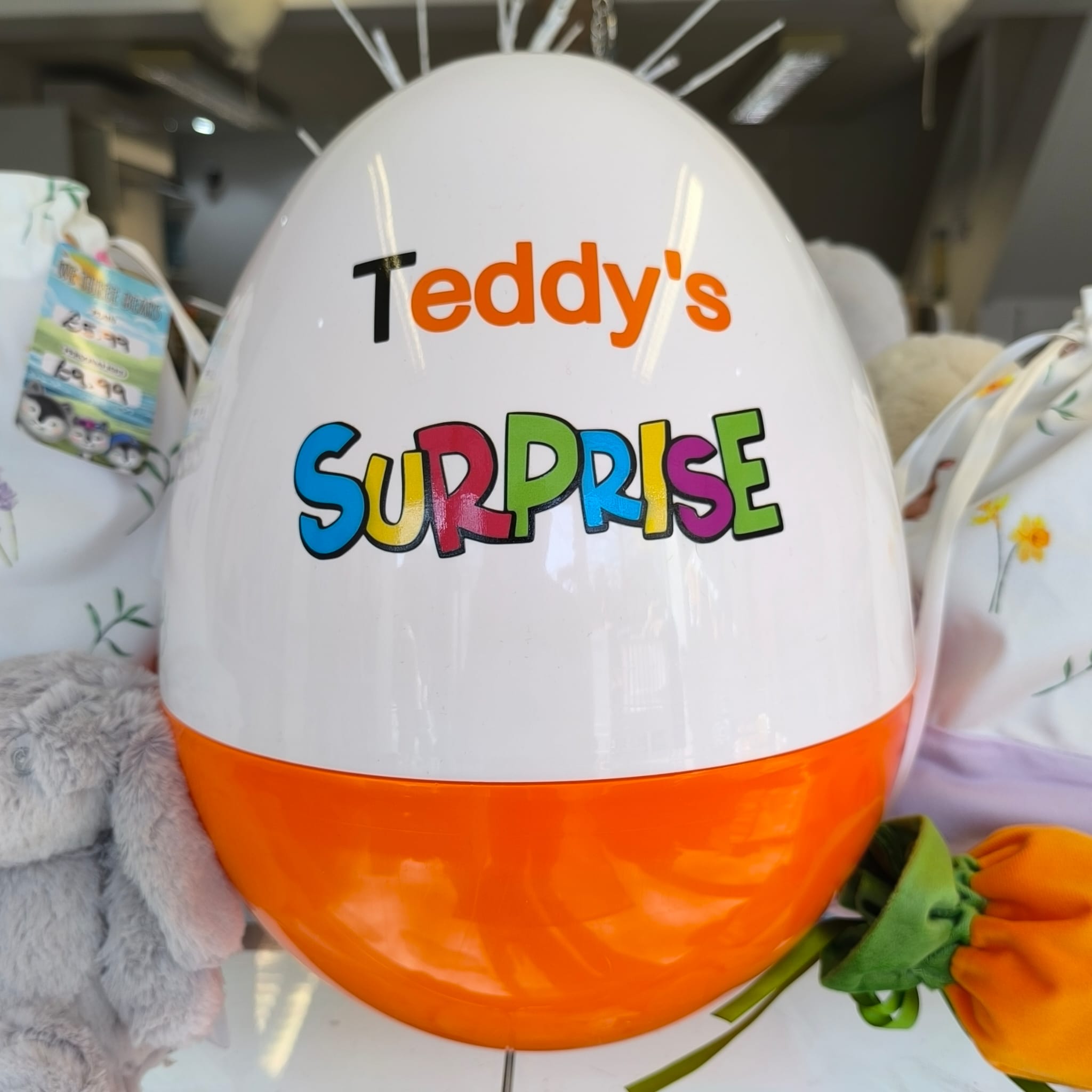 Each egg is personalised with a name above the word “Surprise,” making it a truly unique and special gift for your child.
