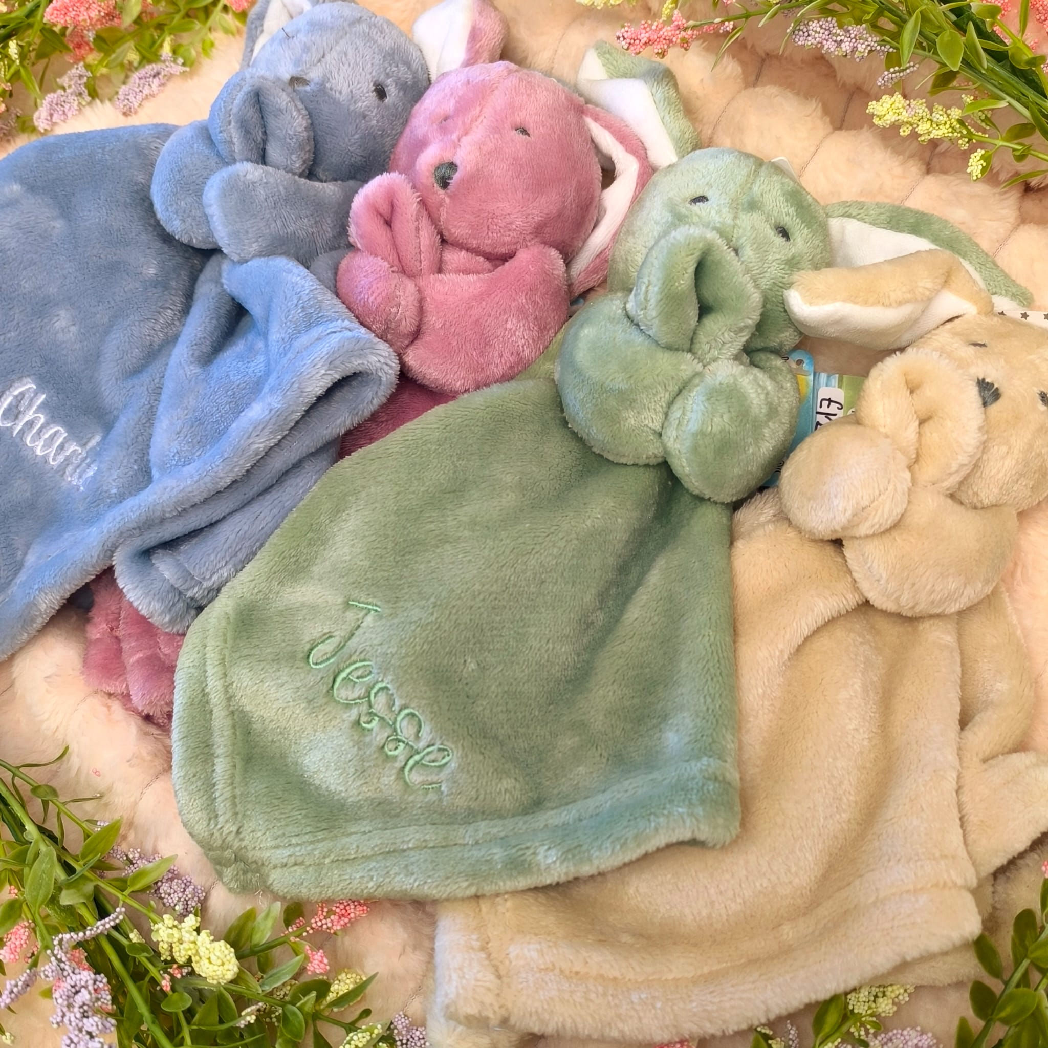 Your gorgeous new little baby will love cuddling up to their own personalised bunny comforter. Featuring a super soft bunny top, holding on to a soft plush comfort blanket.