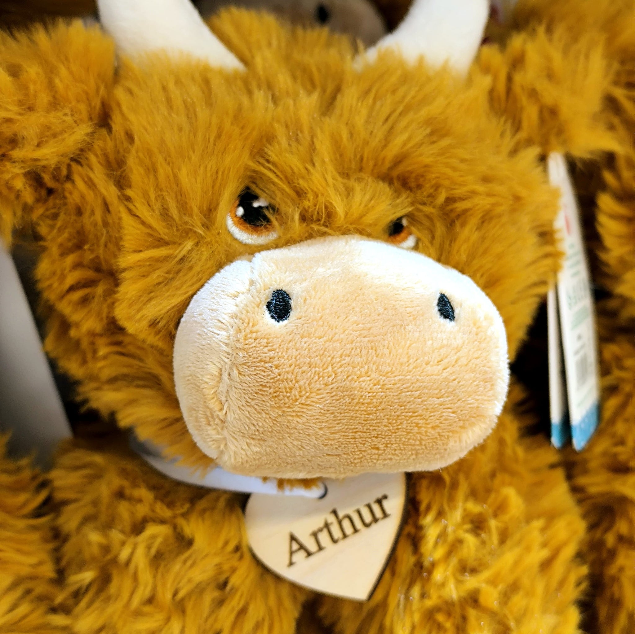 Give the gift of love and sustainability with our Personalised Highland Cow Soft Toy—perfect for welcoming a new baby into the world or as a heartfelt gift for any young child.