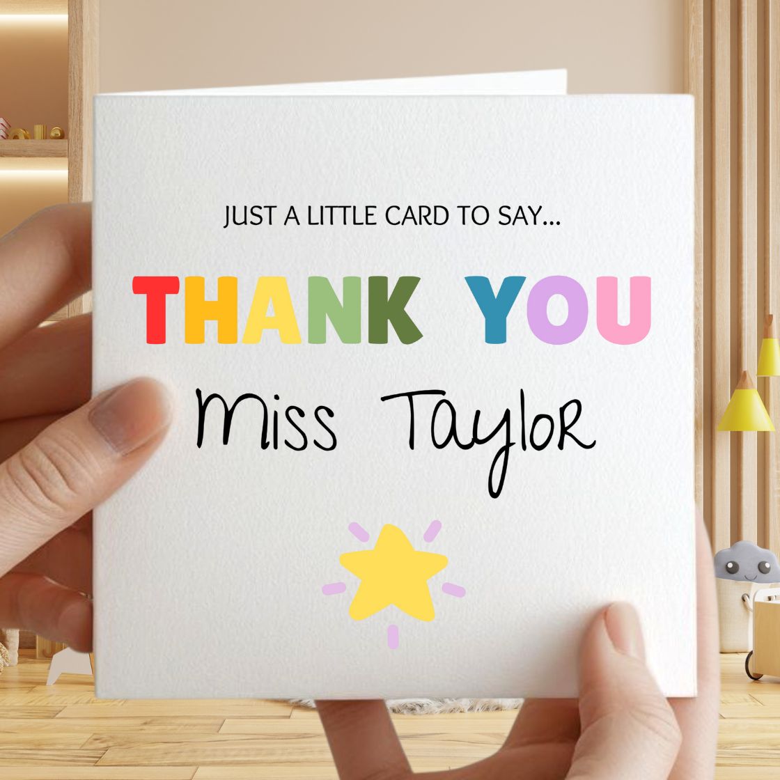 Whether you're saying thank you at the end of term, after a school year full of learning, or just to let a teacher know how much they’re valued, this card is a special gesture they’ll remember. Designed with care and printed on premium quality card, it’s ideal for parents, pupils, or entire classes wanting to send a personalised thank you card to that special teacher. A great teacher gift idea, this customised teacher gift stands out with its personalised design, making it a lasting keepsake. It’s a lovely touch for nursery staff, primary school teachers, teaching assistants, and more — a truly thoughtful and personal way to say thank you.