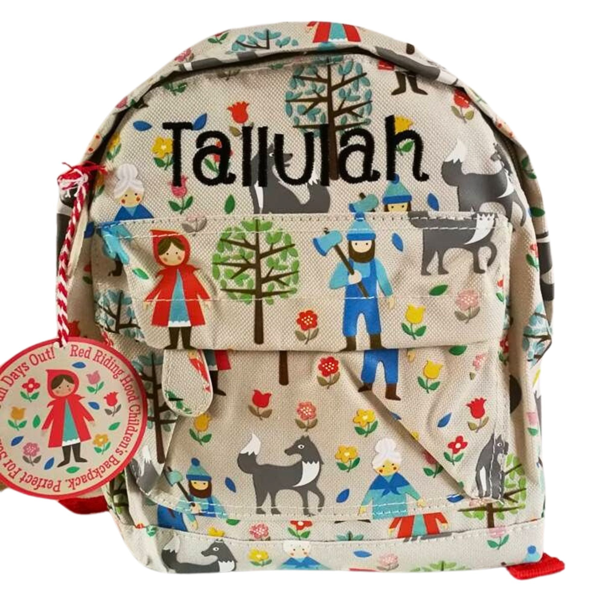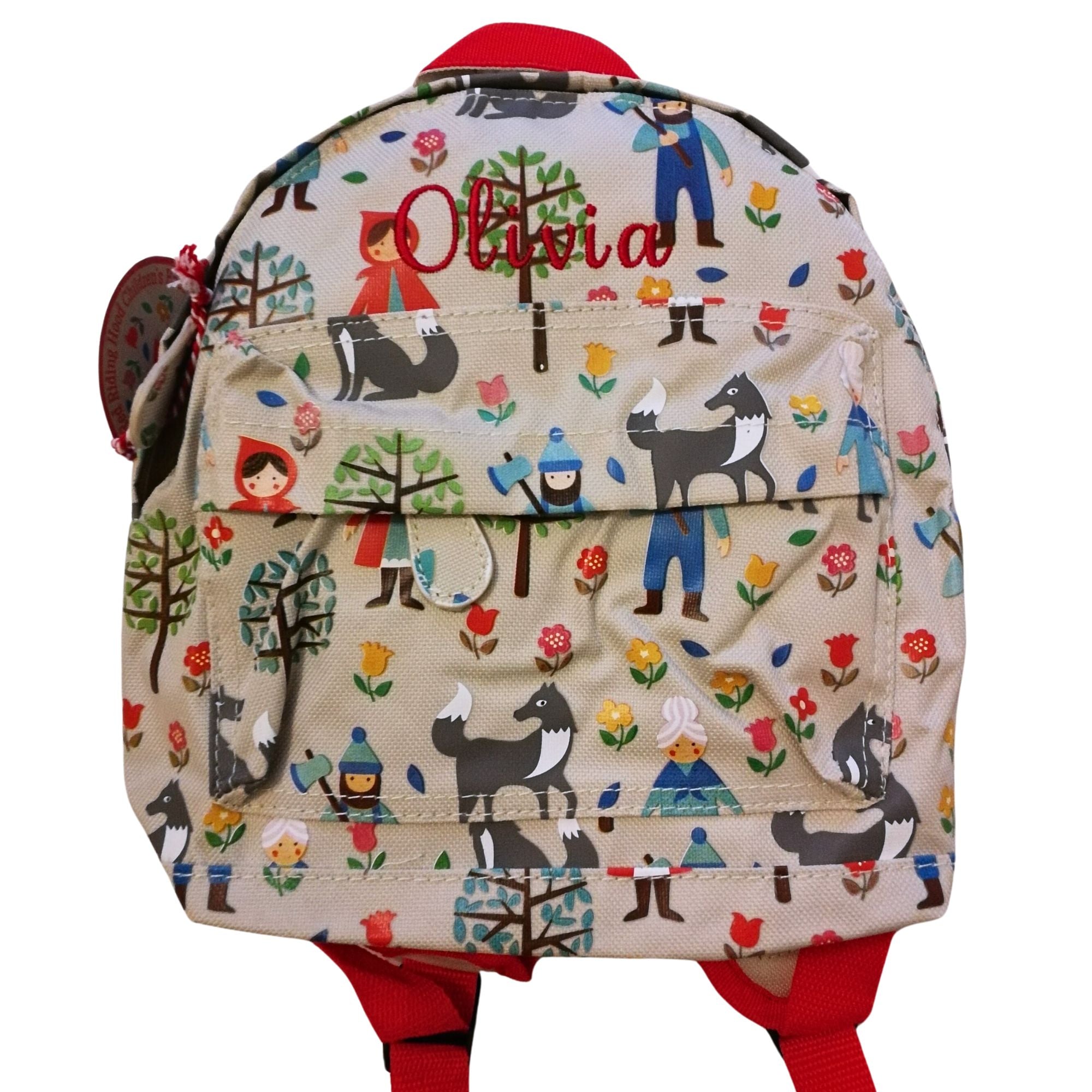 All children have heard the fairytale of Red Riding Hood. Our embroidered backpack for girls or boys is perfect for any toddler at nursery. Featuring a cute and colour design featuring characters from the famous fairytale.