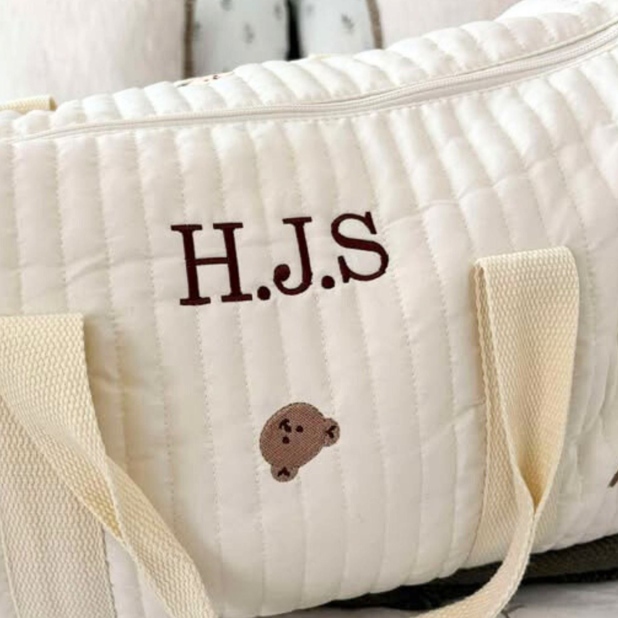 You can make your teddy bear holdall even more unique by adding an embroidered name or initials to the front side of the bag. We have a large selection of different fonts and thread colours that you can choose from to make your hospital bag truly one of a kind to you.