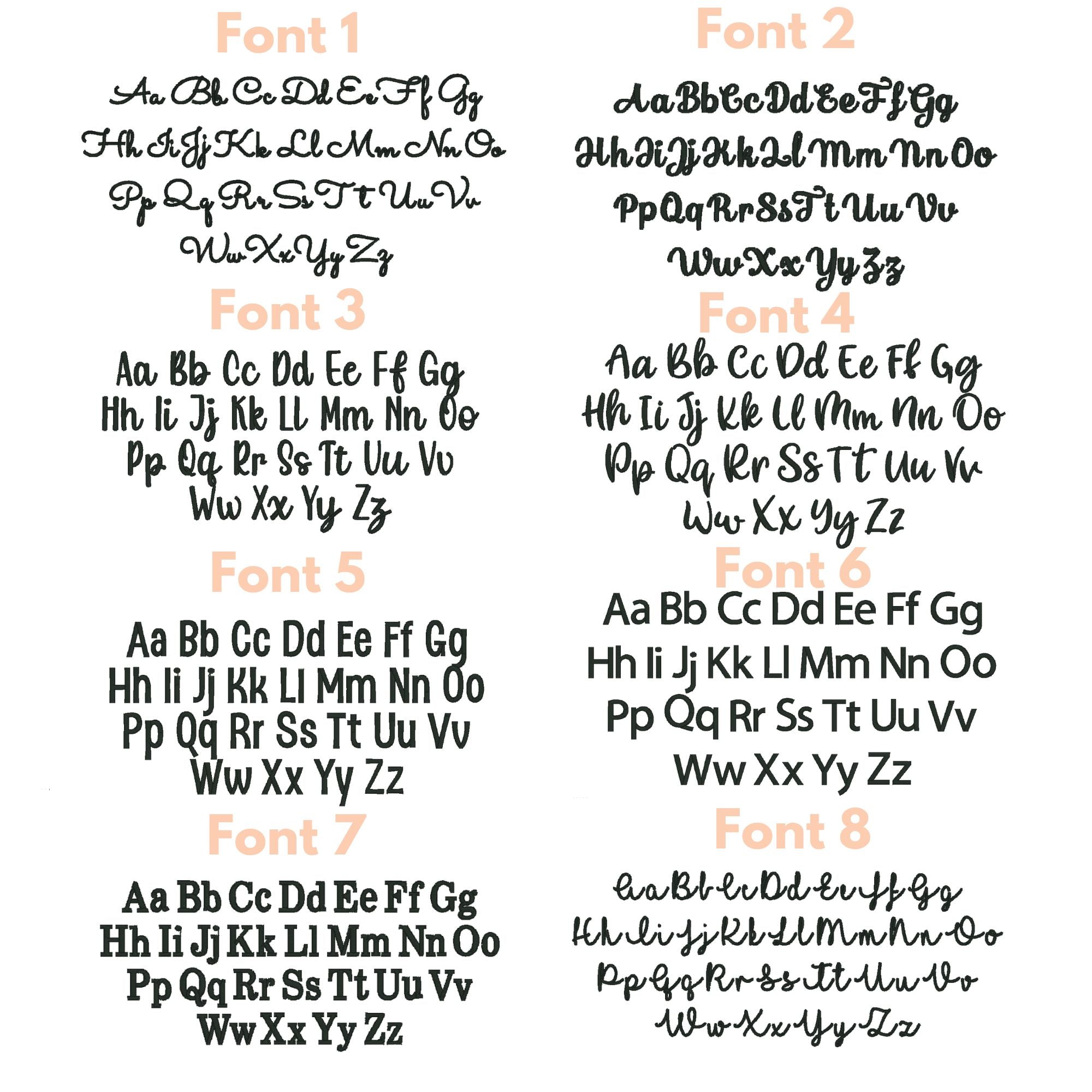 • You can choose between our range of Font options and Thread colours. (if applicable)