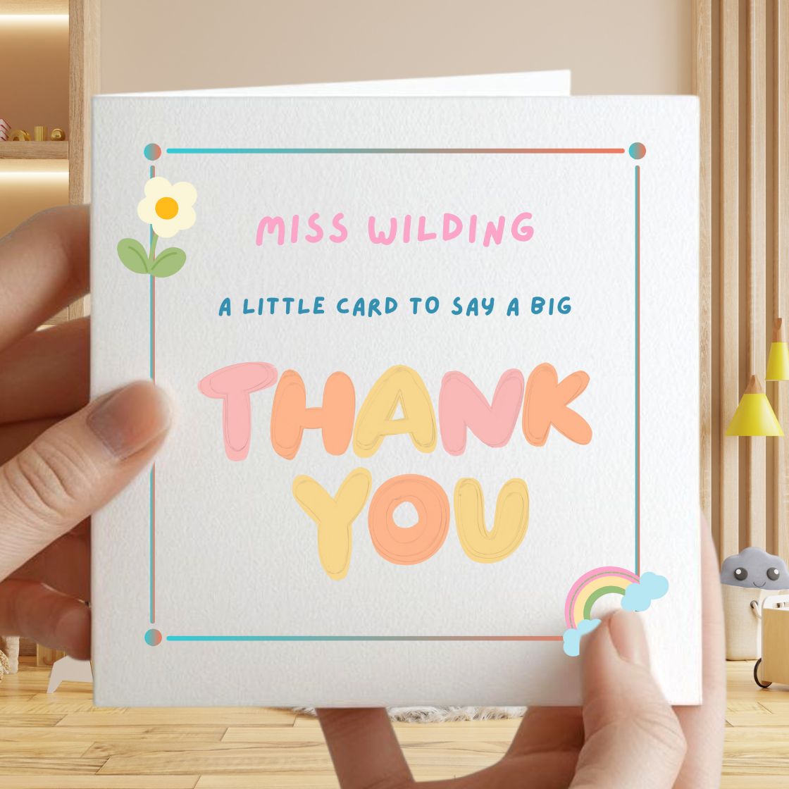 Whether you're saying thank you at the end of term, after a school year full of learning, or just to let a teacher know how much they’re valued, this card is a special gesture they’ll remember. Designed with care and printed on premium quality card, it’s ideal for parents, pupils, or entire classes wanting to send a personalised thank you card to that special teacher. A great teacher gift idea, this customised teacher card stands out with its personalised design, making it a lasting keepsake. It’s a lovely touch for nursery staff, primary school teachers, teaching assistants, and more — a truly thoughtful and personal way to say thank you.
